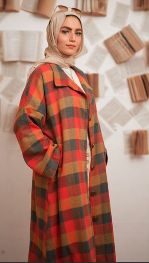 Wool Vibes Checkered Coat - Red