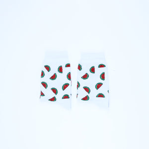 Cotton Watermelon Print Crew Socks – White