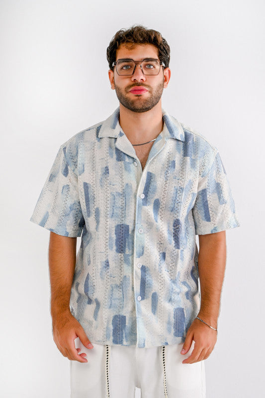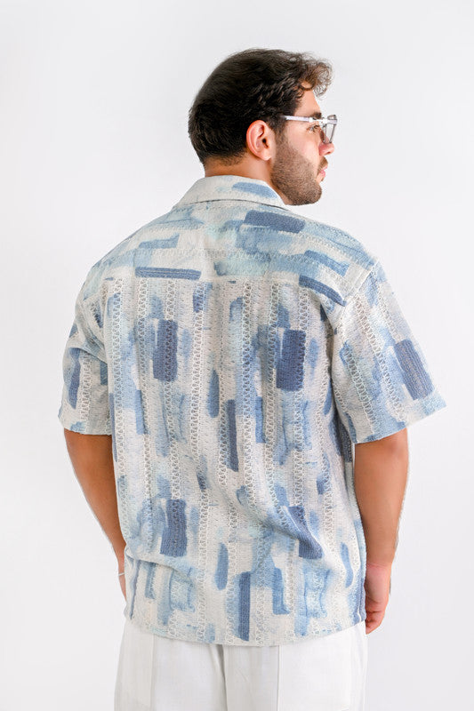 Textured Relaxed Shirt – Light Blue & Navy