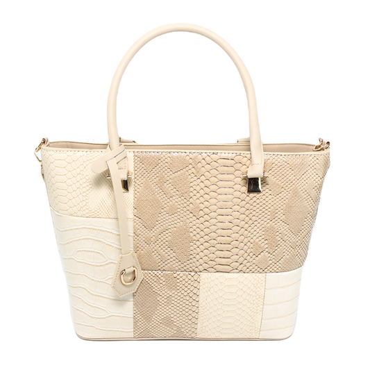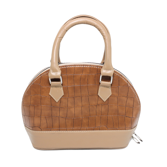 Faux Leather Croc-Embossed Handbag – Beige