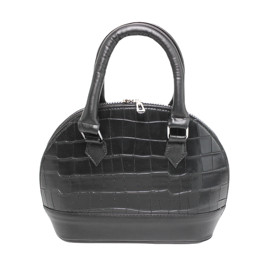 Faux Leather Croc-Embossed Handbag – Black