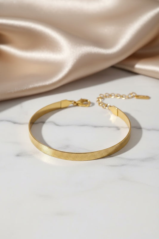 Stainless Steel Flat Snake Chain Bracelet – Gold