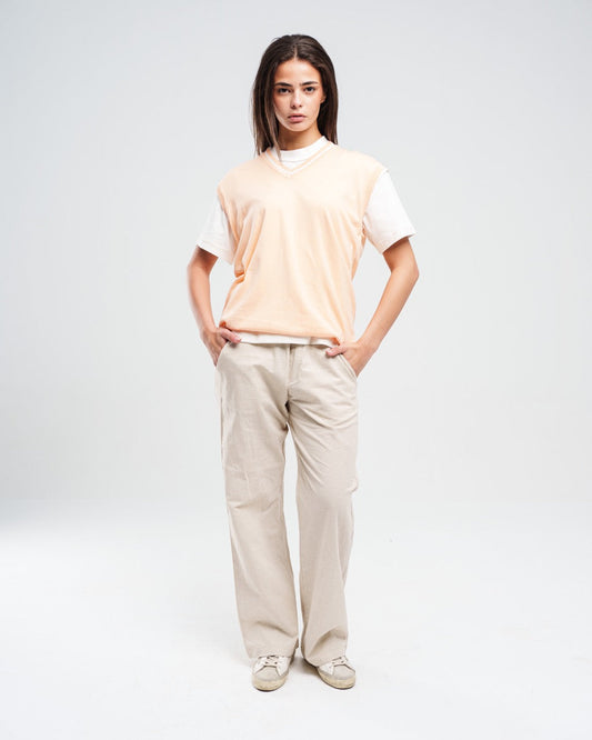 Knit Solid V-Neck Sweater Vest – Light Peach
