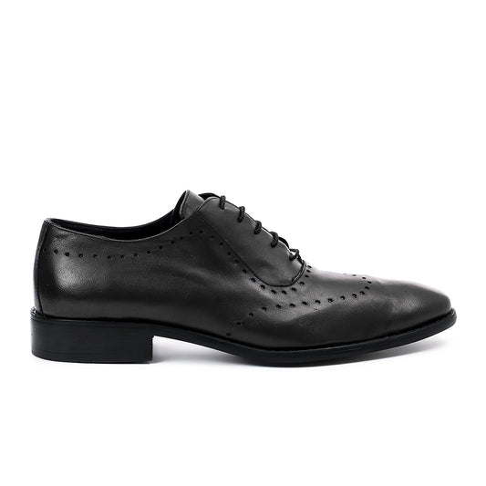 Leather Brogue Oxford Lace-Up Shoes - Brown