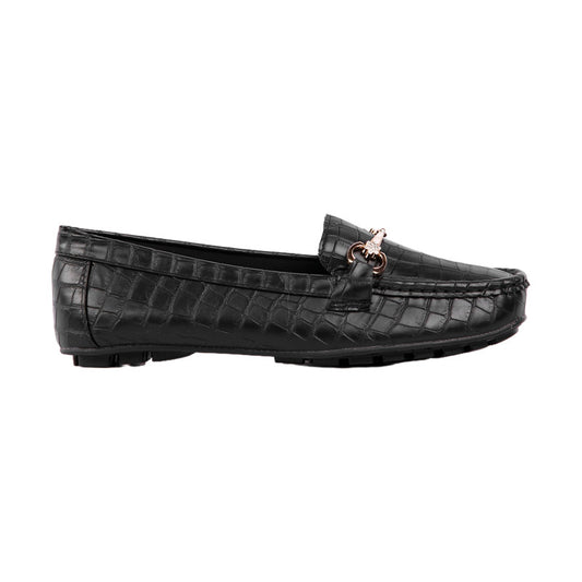 PU Leather Patent Buckle Strap Chunky Loafers - Black
