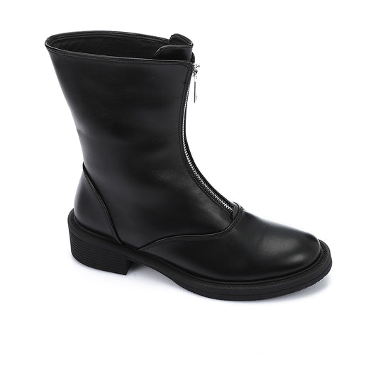 Faux Leather Crocodile Pattern Ankle Boot - Black