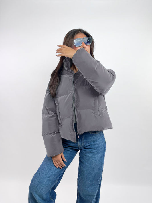Waterproof Solid Puffer Jacket – Grey