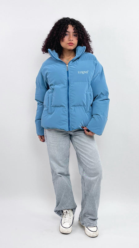 Waterproof Solid Puffer Jacket – Teal Blue