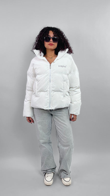 Waterproof Solid Puffer Jacket – White