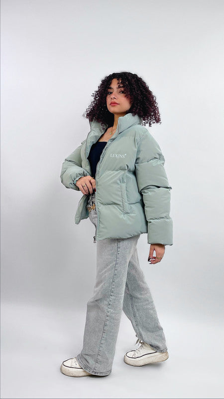 Waterproof Solid Puffer Jacket – Mint Green