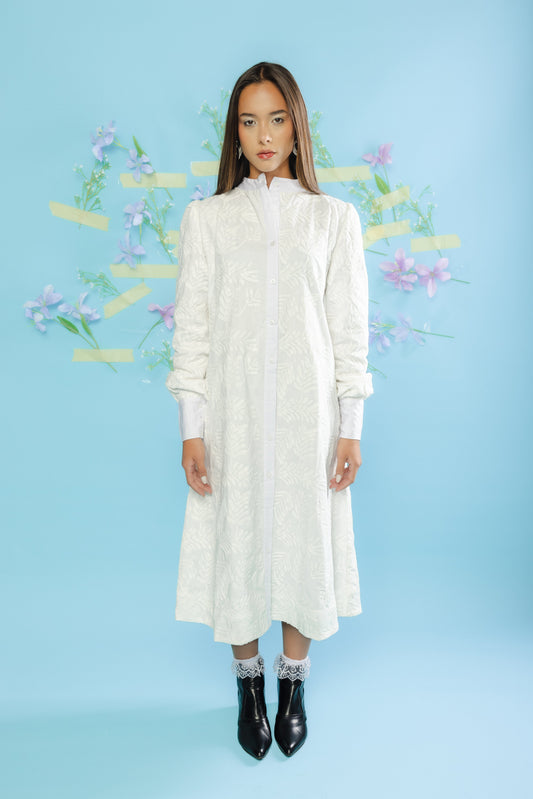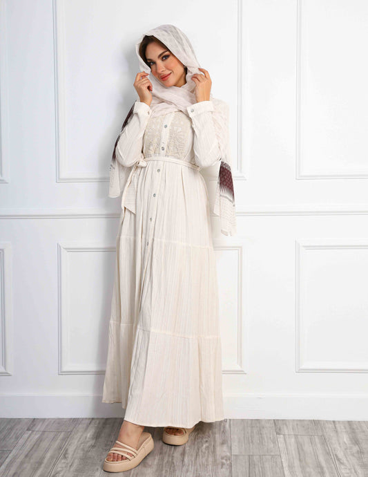 Cotton Long Sleeve Maxi Dress - Light Blue