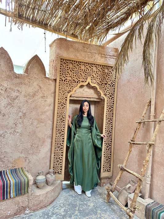 Gabardine Shirt-Style Belted Midi Dress - Olive