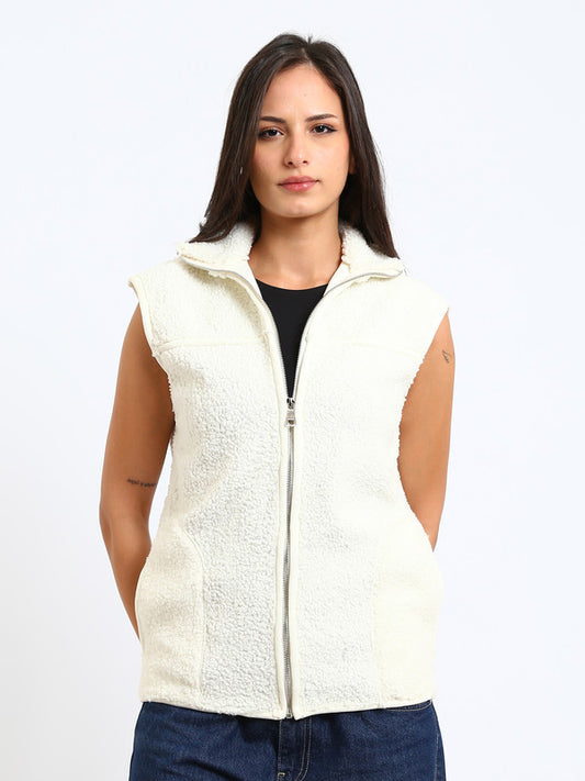 Teddy Fur Plain Zipped Vest – White