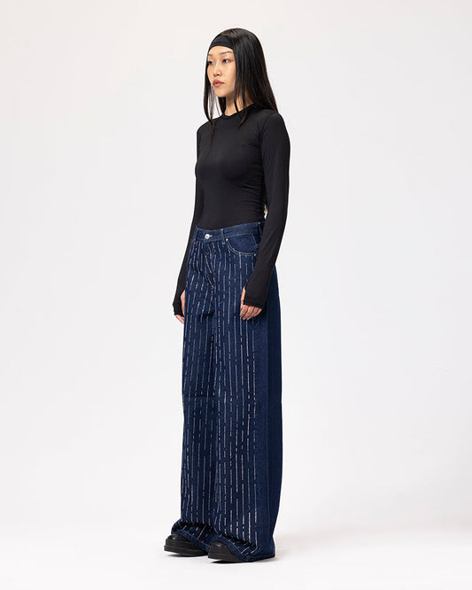 Denim Shimmery Fold-Up Pants - Dark Blue