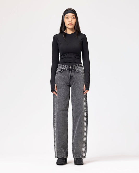 Light Gabardine Pinstripe Wide-Leg Pants – Grey