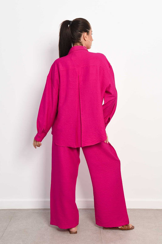 Linen Two-Piece Casual Loose Set - Fuchsia