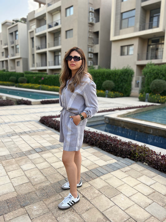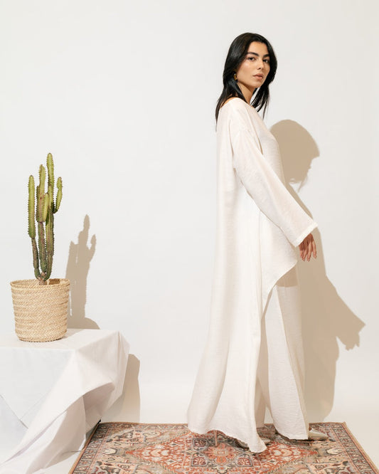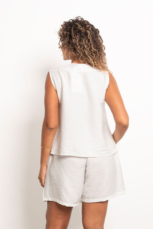 Linen Rectangle Cut Neck Set Top & Short For Women