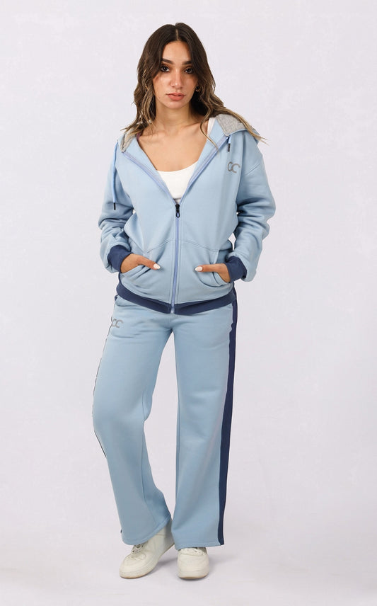 Linen Wrap Top & Wide-Leg Pants Set - French Blue