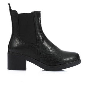 - Key Features: Subtle snake-embossed texture, comfortable block heel, classic elastic Chelsea sides, back pull tab for easy on/off.