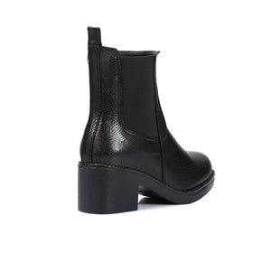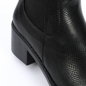 Leather Snake Embossed Chelsea Boot - Black