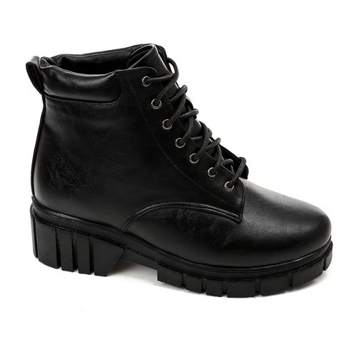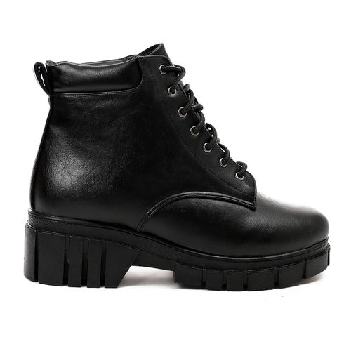 Faux Leather Lace-Up Ankle Boots – Black