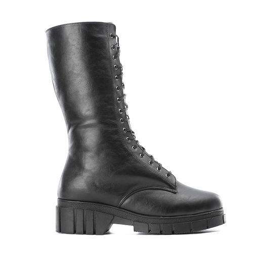 Faux Leather Knee-High Lace-Up Boots – Black