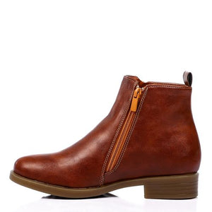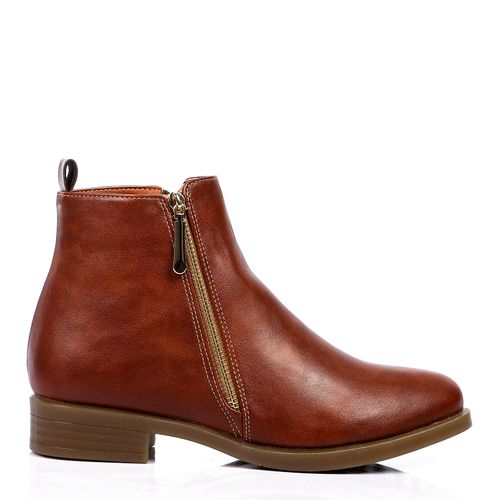 Faux Leather Zip Ankle Boots – Tan