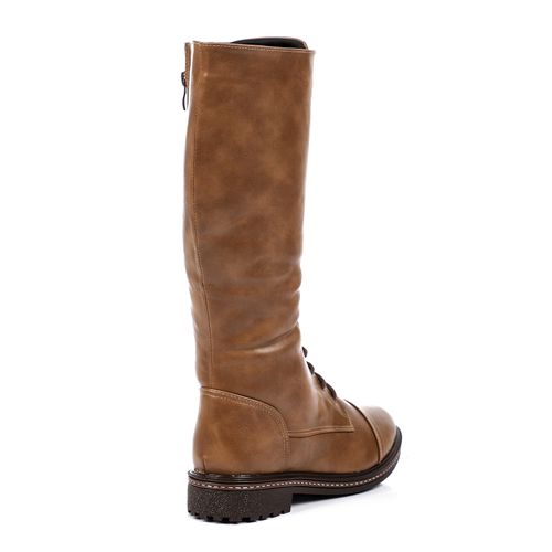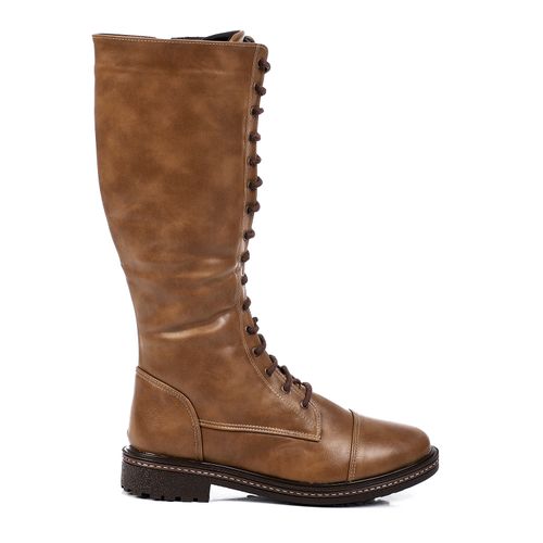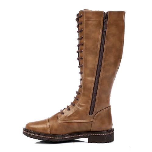 Faux Leather Knee-High Lace-Up Boots – Camel