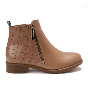 Faux Leather Croc-Pattern Ankle Boots – Camel