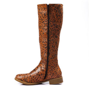 Faux Leather Knee-High Boots - Brown