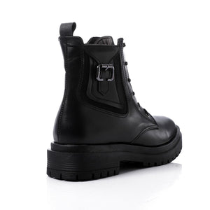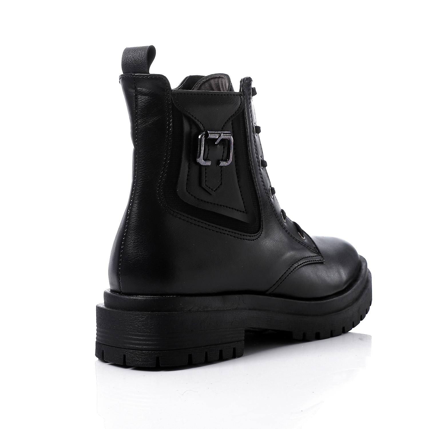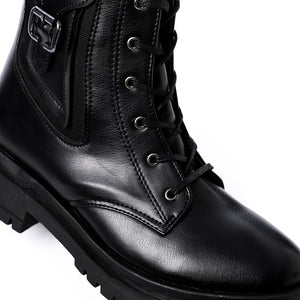Faux Leather Solid Combat Boot - Black
