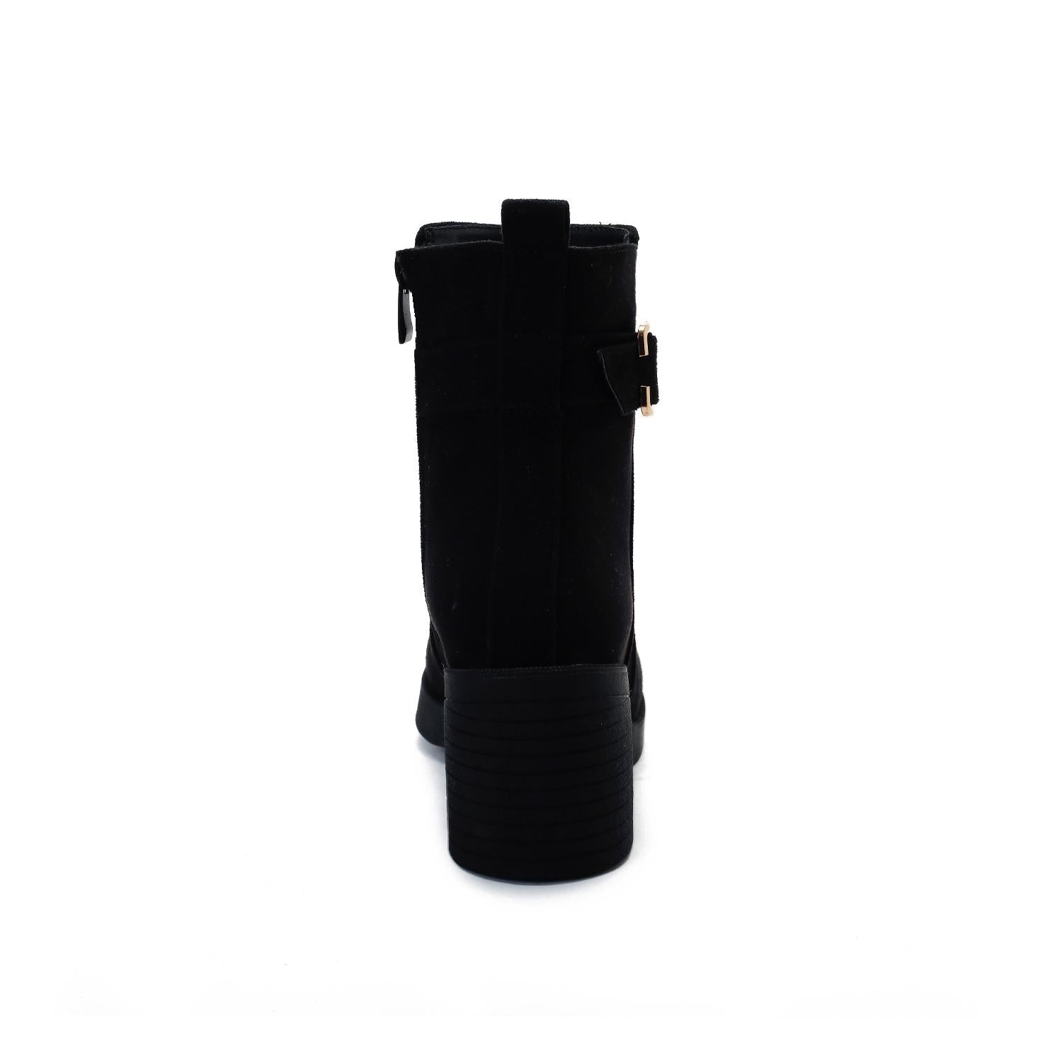 Key Features: Croc-embossed texture, side buckle design, easy-wear zipper, supportive block heel, premium foam lining