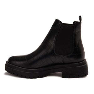 Faux Leather Croc-Embossed Chelsea Boot - Black