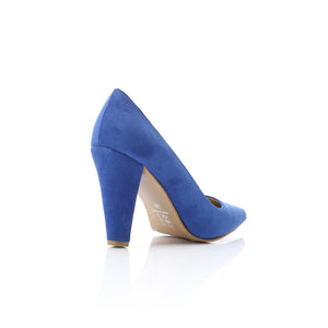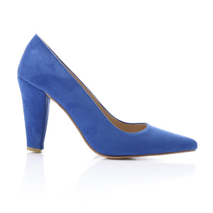 Suede Pointed-Toe Cone Heel Pump - Blue