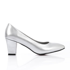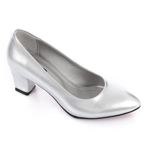 Patent Leather Low Hell Classic Pumps - Silver