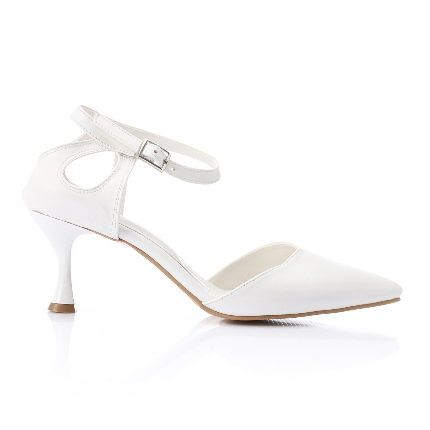 Faux Leather Pointed-Toe Kitten Heel Pump - White