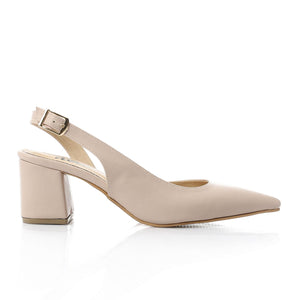 Faux Leather Solid Block Heel Slingback Pumps - Beige