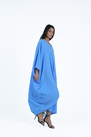 This Linen Embroidered Abaya is the perfect blend of comfort and elegance. Crafted from breathable linen, it features a solid design with a bold embroidered detail on the back for a statement finish. The deep V-neckline and 3/4 batwing sleeves offer a relaxed yet stylish silhouette, while the maxi length ensures graceful movement. The oversized fit makes it easy to layer, adding versatility to your wardrobe. Whether you're lounging at home or stepping out, this abaya is a timeless piece that effortlessly elevates your style.