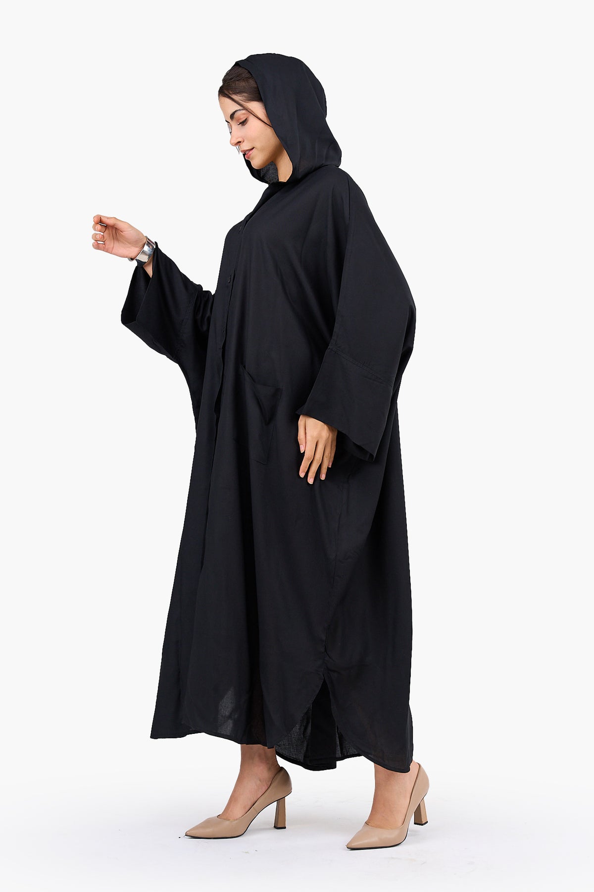 This oversized shirt dress, crafted from soft and breathable Tencel, combines effortless style with ultimate comfort. Designed in a solid pattern, it features a hooded collar for a casual yet chic touch. The button-down closure and front slit add a modern edge, while the long wide sleeves and maxi length create a flowy, relaxed silhouette. With side slits enhancing movement, this versatile piece is easy to wear and perfect for any occasion.