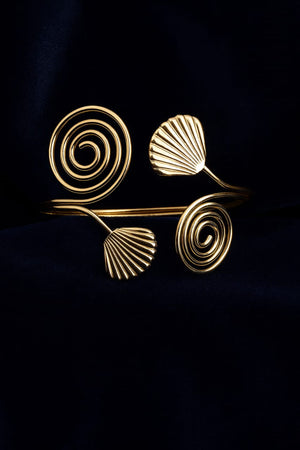 Zinc Alloy Spiral & Leaf Pattern Arm Cuff Bracelet – Gold