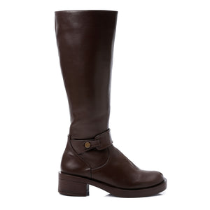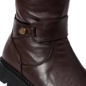 Faux Leather Buckle Detail Mid-Calf Boots - Brown