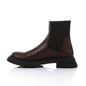 Leather Chunky Sole Chelsea Boots - Burgundy