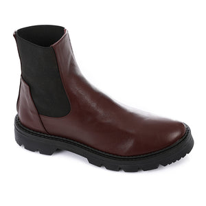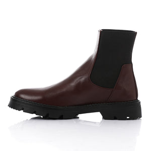 Leather Chunky Sole Chelsea Boots - Burgundy