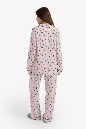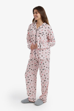 All-Over Printed Notch Collar Pajama Set – Multicolor