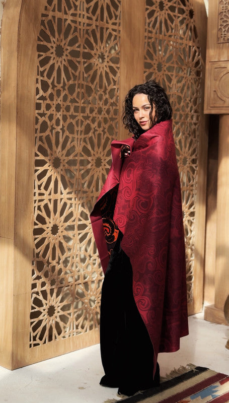 Arabesque Double Face Square Shawl – Burgundy