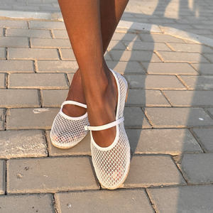 Synthetic Bailatira Fishnet Flats - White