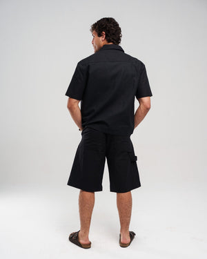 Linen Utility Shorts - Black