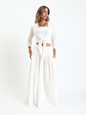 Synthetic Bohemian Blouse & Maxi Skirt Set - White