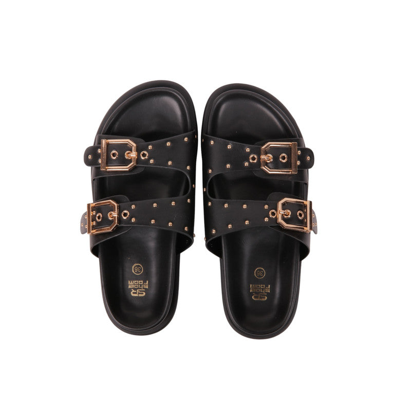 Buckle Design Flat Sandals – Black (SR-3660)