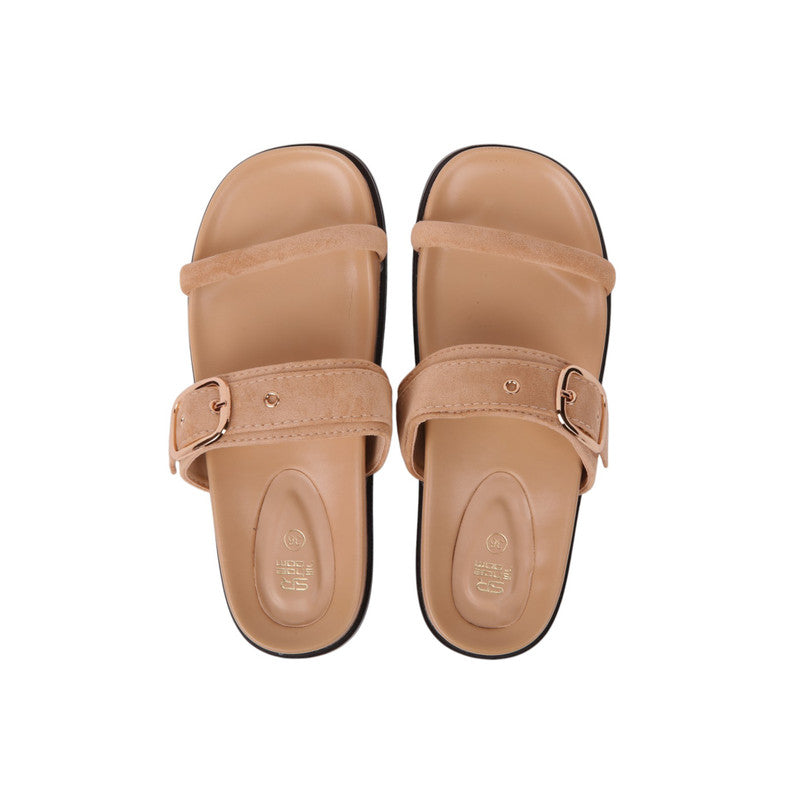 Buckle Strap Design Flat Sandals – Beige (SR-3663)